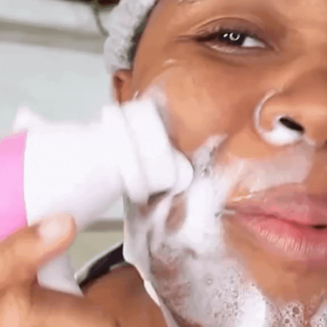 Enciende el dispositivo y masajea suavemente tu rostro para revelar una piel limpia, suave y radiante en 60 segundos.